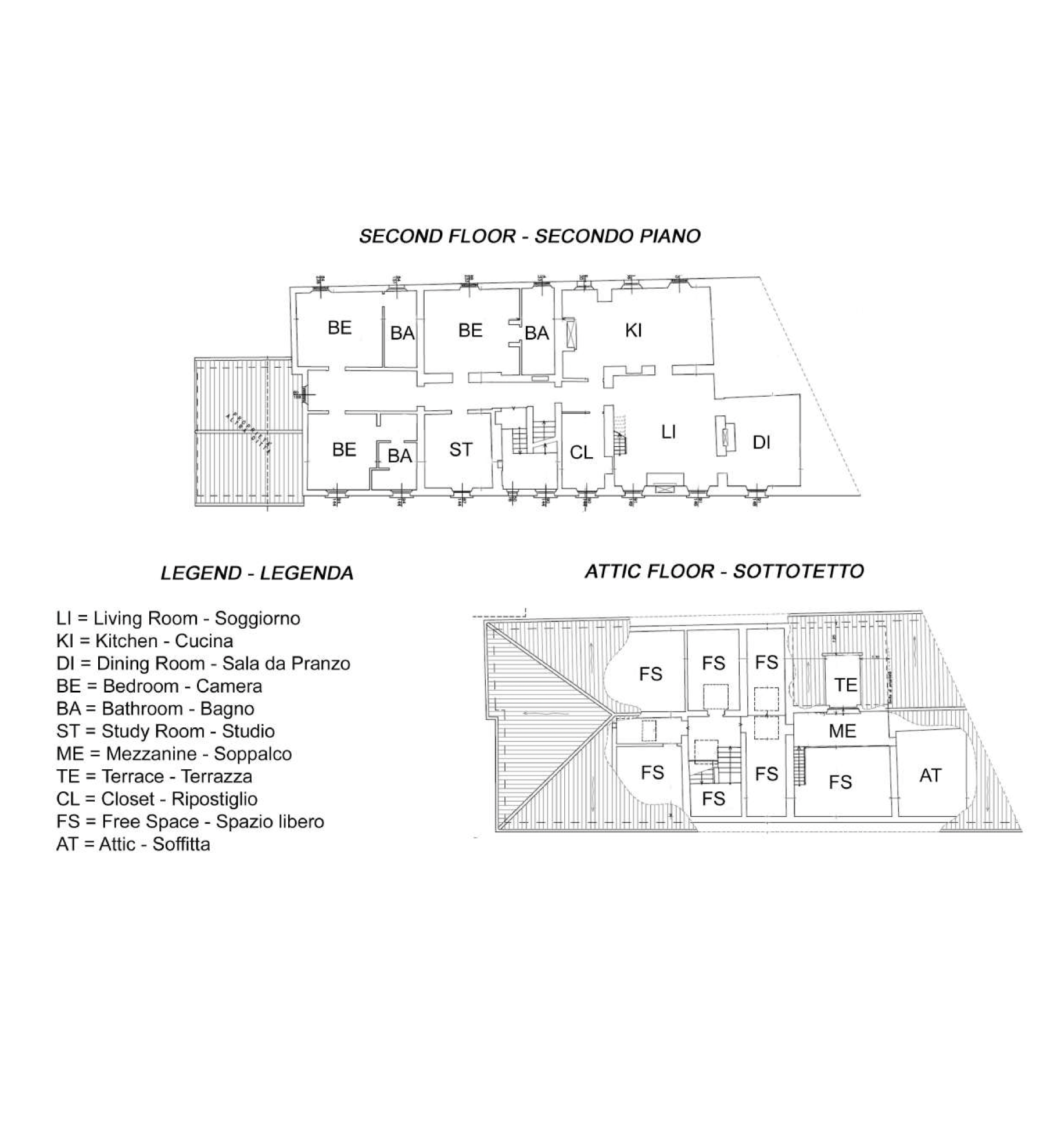 The attic floor features open spaces suitable for storage rooms, along with a small terrace that adds a charming additional outdoor corner.