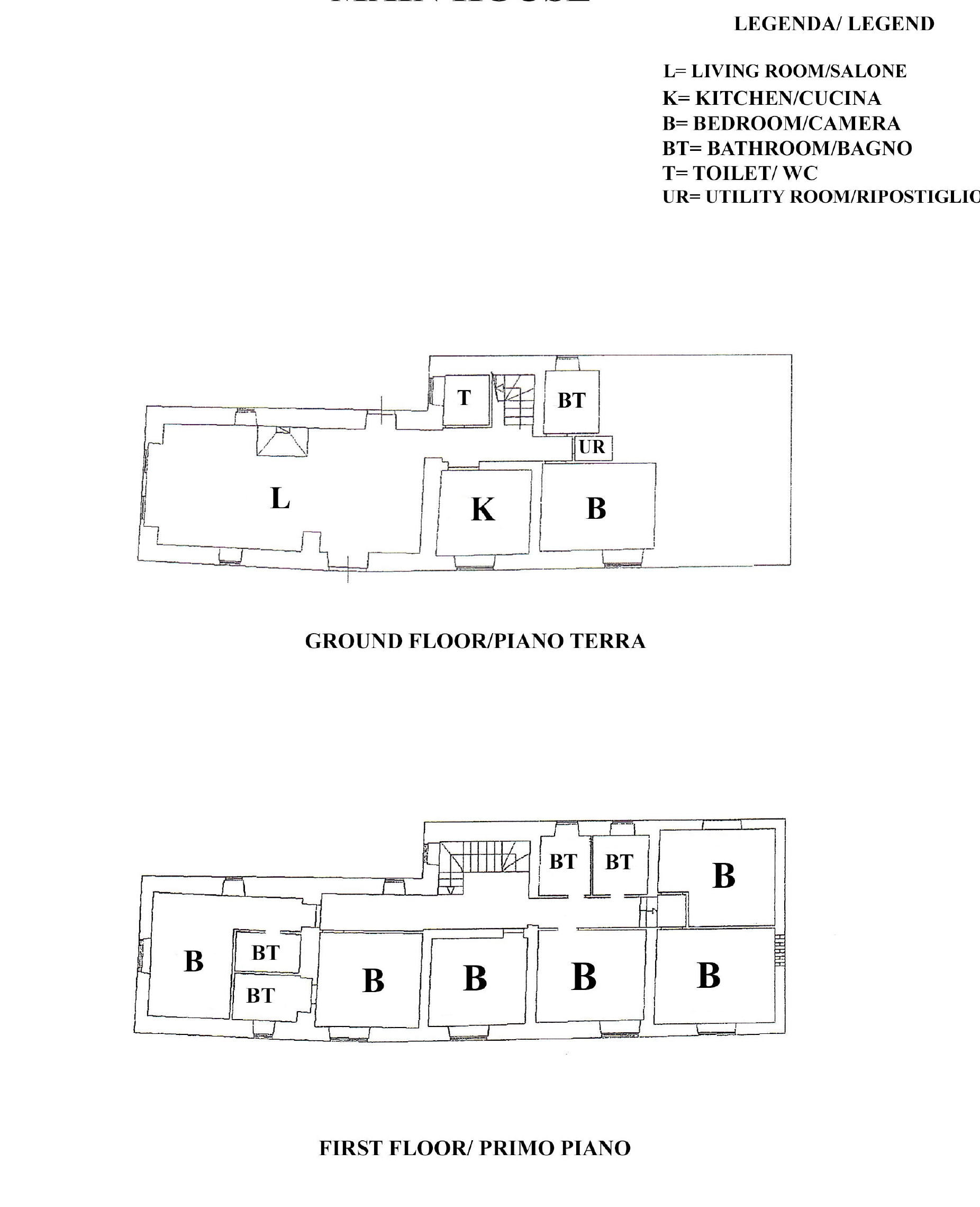 Starting from the house, we find a large living room with fireplace and French window that gives direct access to the outside. Then we have the kitchen, toilet, a bedroom, storage room and bathroom.
