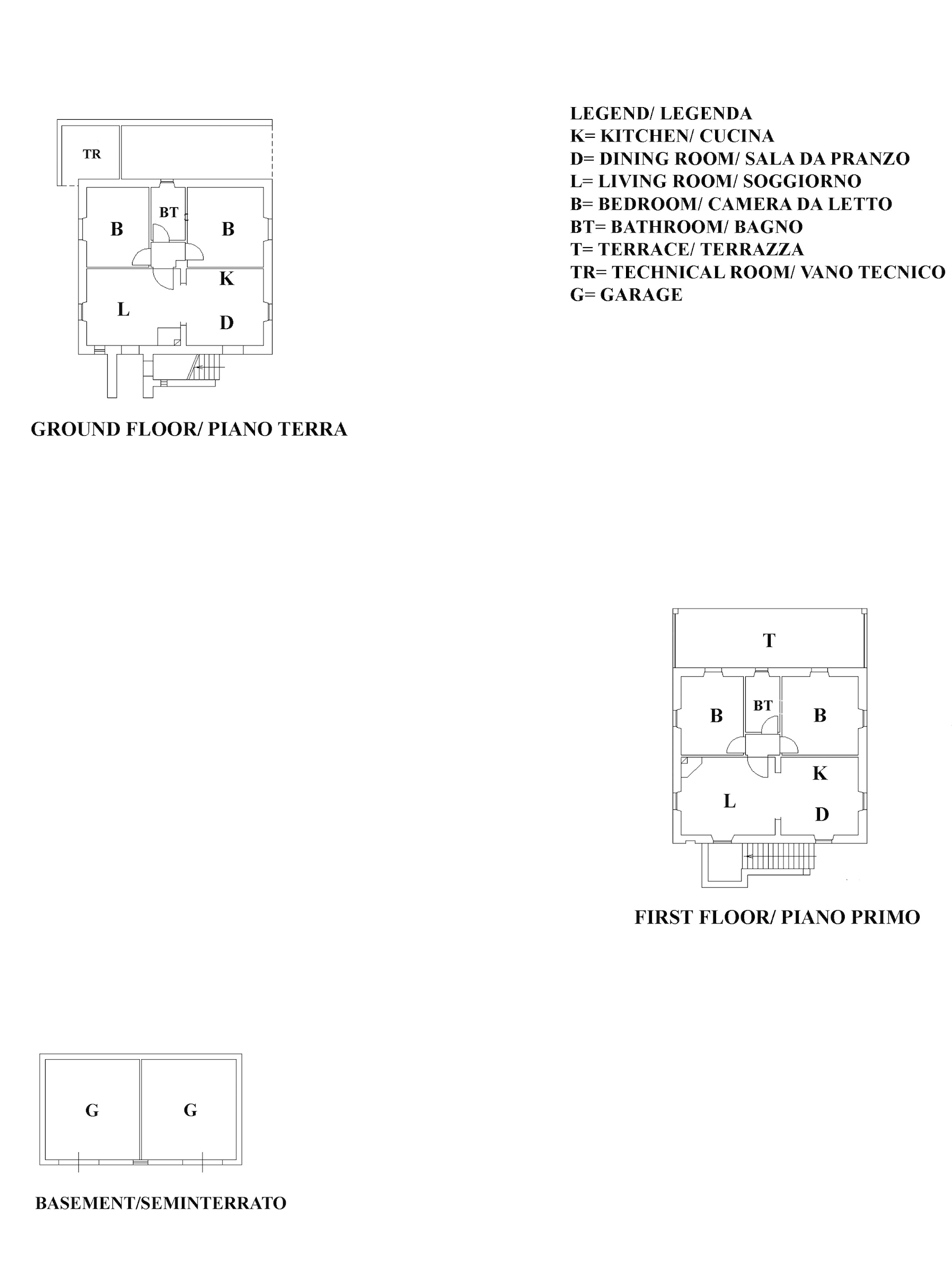 on the ground floor there is the first apartment, which houses an open-space with kitchen, dining area with external access, living area with fireplace, 2 bedrooms with external access and a bathroom.
