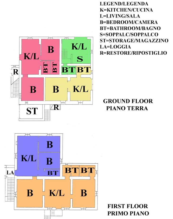 On the ground floor there are 3 apartments and a storeroom and on the first floor there are the other 2 apartments.