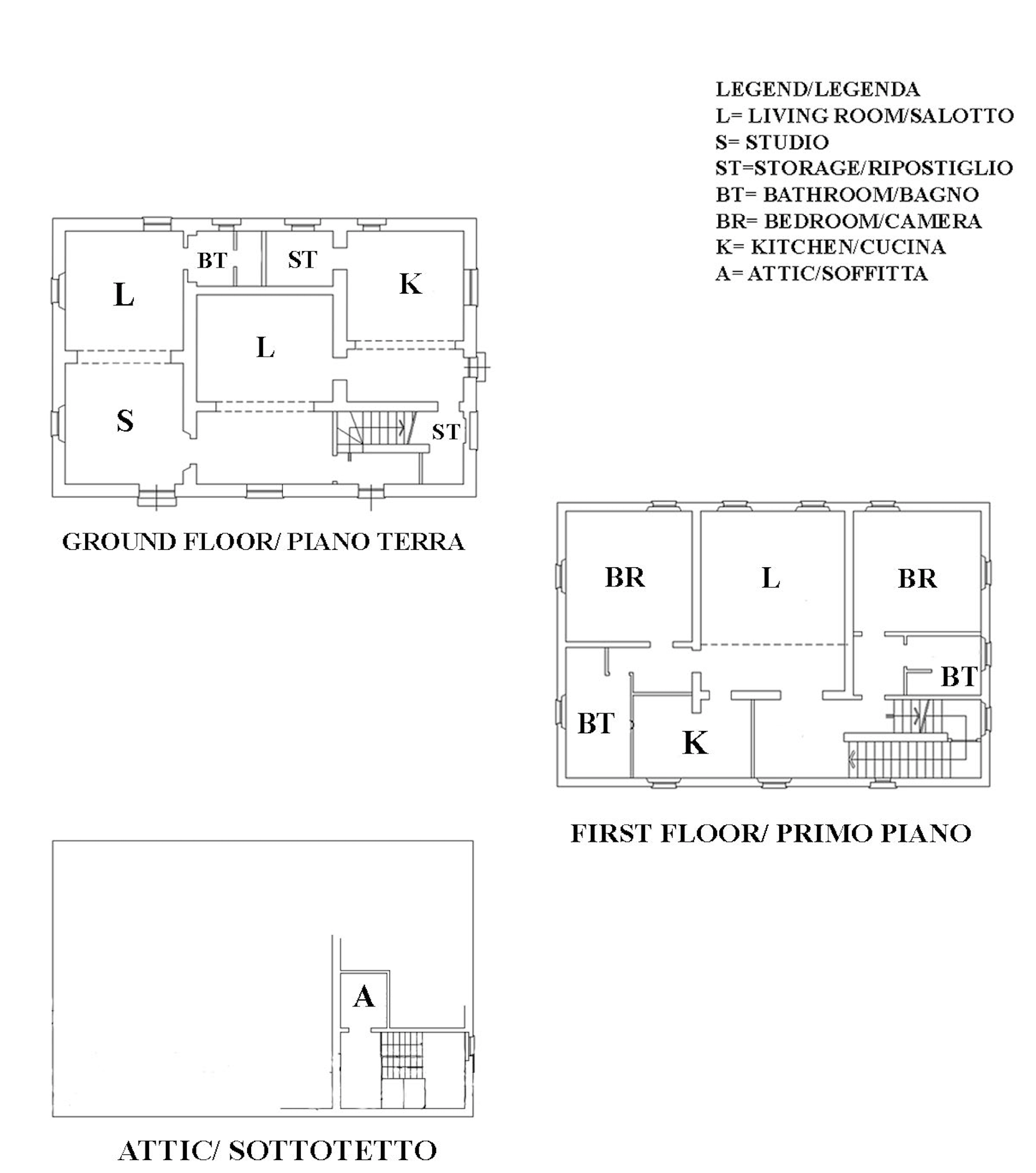 The property, which measures approximately 300 sq mts, is divided on two levels and is composed as follows.