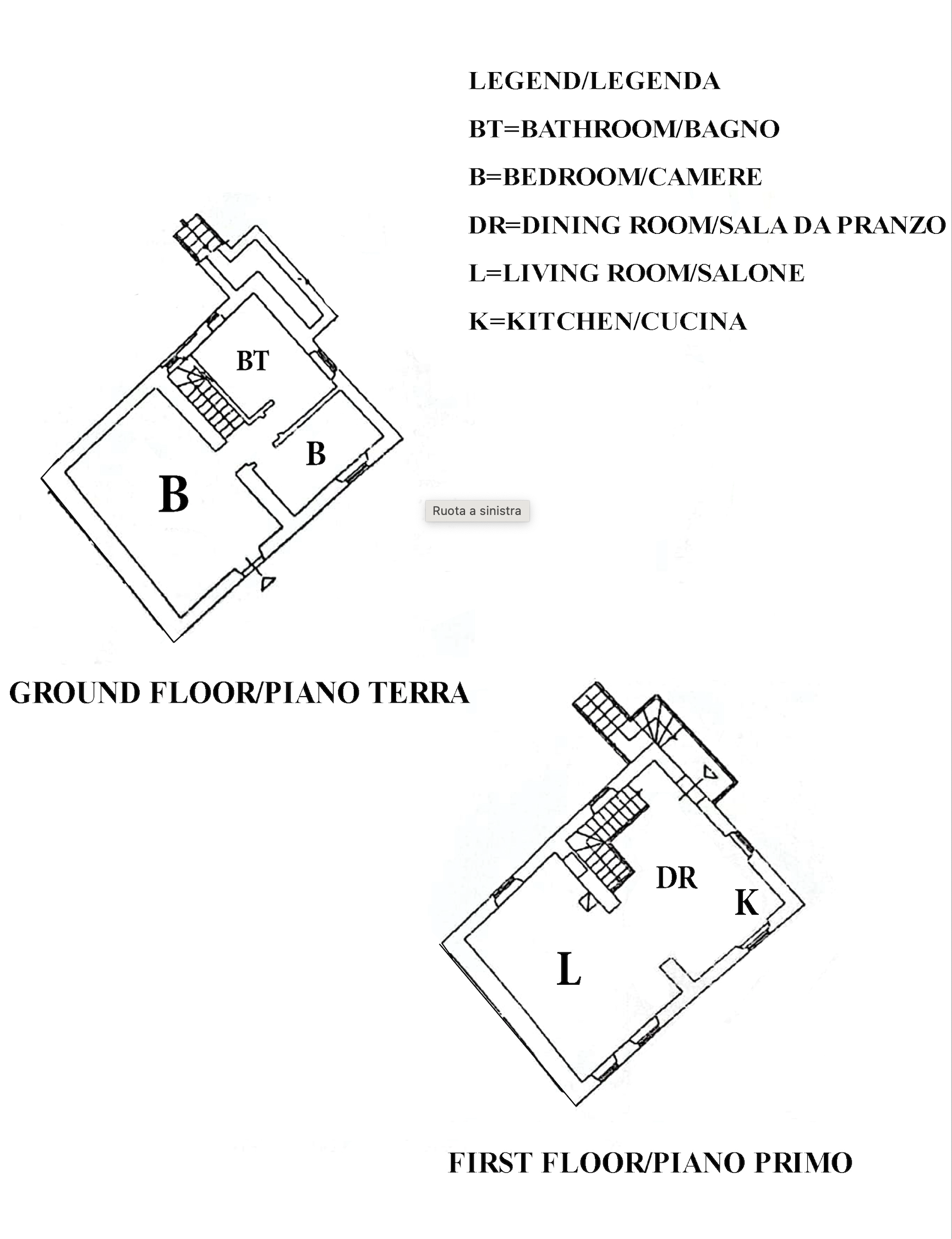 The second floor, which is accessible by both internal and external staircase, contains an open space area formed by kitchen, dining room and living room with wood stove.