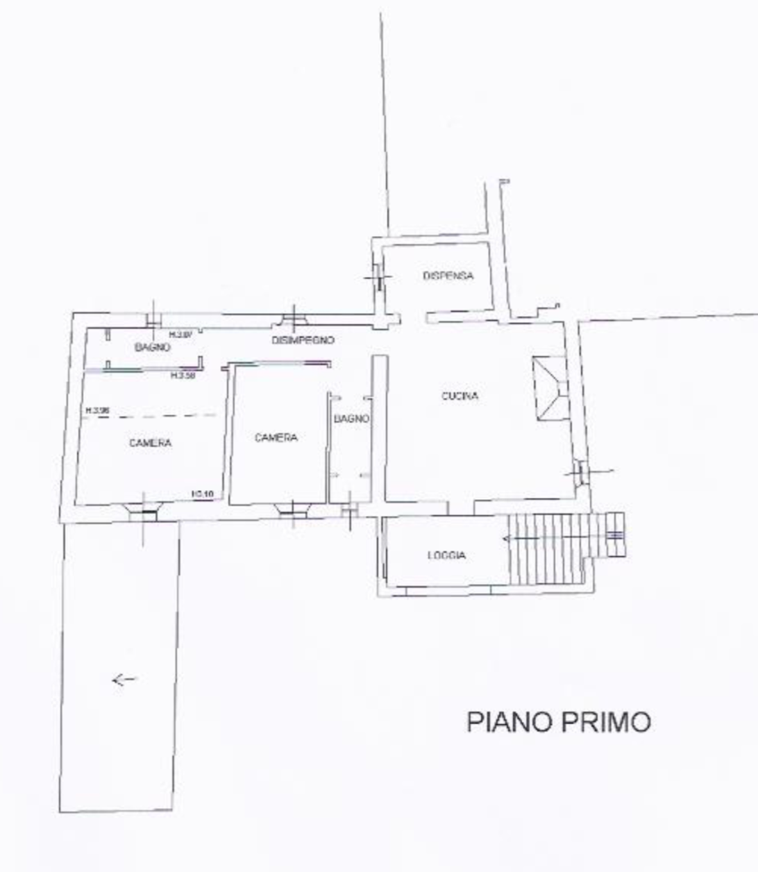Ulteriore appartamento a piano primo con ingresso indipendente dalla loggia, composto dal salone, cucina con camino, due spaziose camere matrimoniali con due bagni.