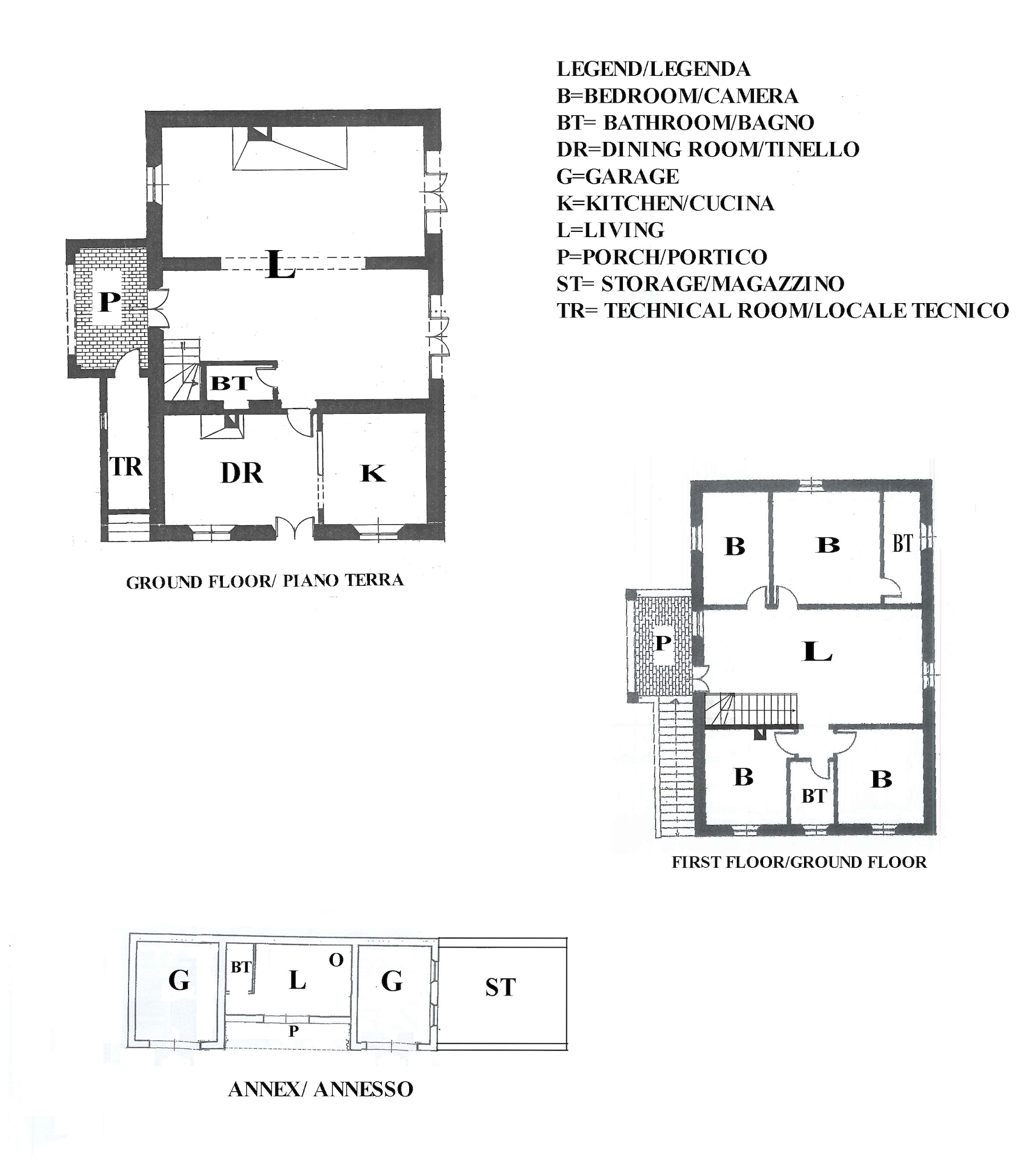 Completano la proprietà un locale tecnico adiacente al portico d’ingresso e un grande annesso in pietra di circa 129 mq. Quest’ultimo è costituito da una spaziosa taverna con bagno, 2 autorimesse e un vano adibito a magazzino.