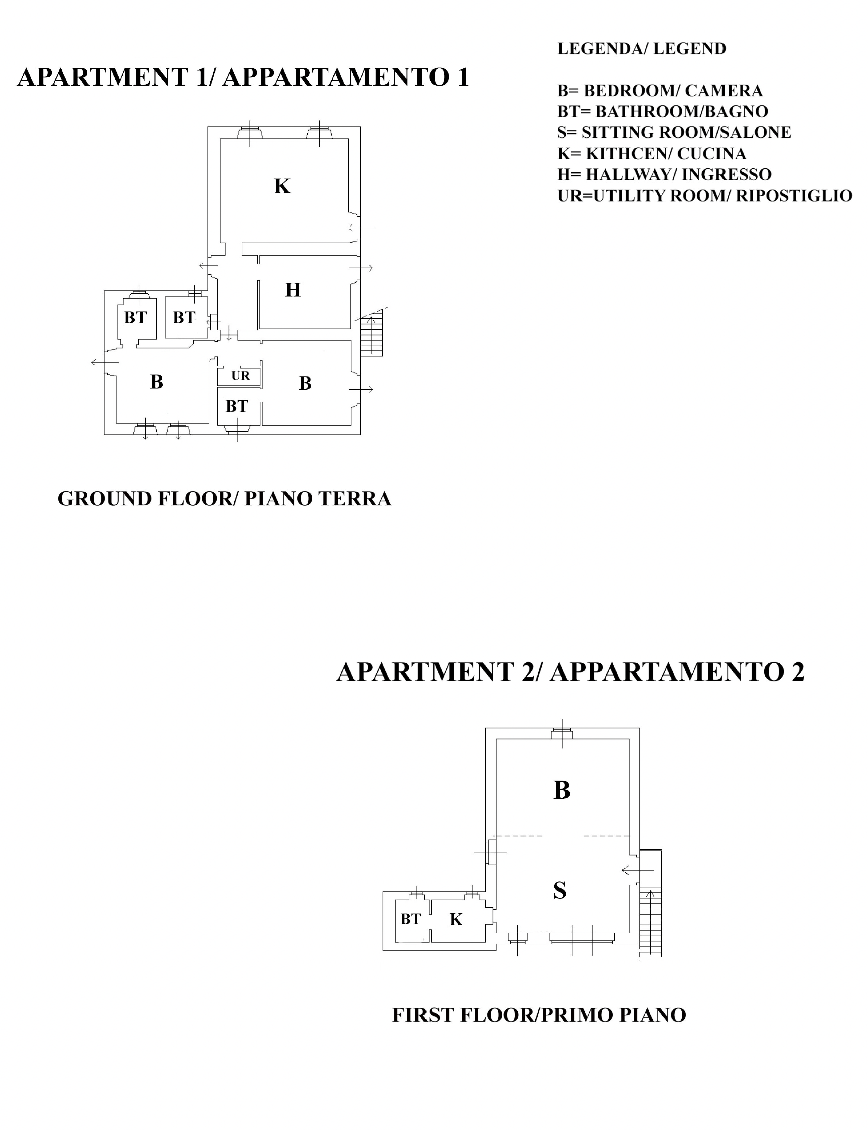 Di fianco al casale si trova la dependance disposta su due livelli e divisa in due appartamenti. A piano terra troviamo il primo appartamento formato da ingresso, salotto, cucina, 2 camere da letto e 3 bagni.