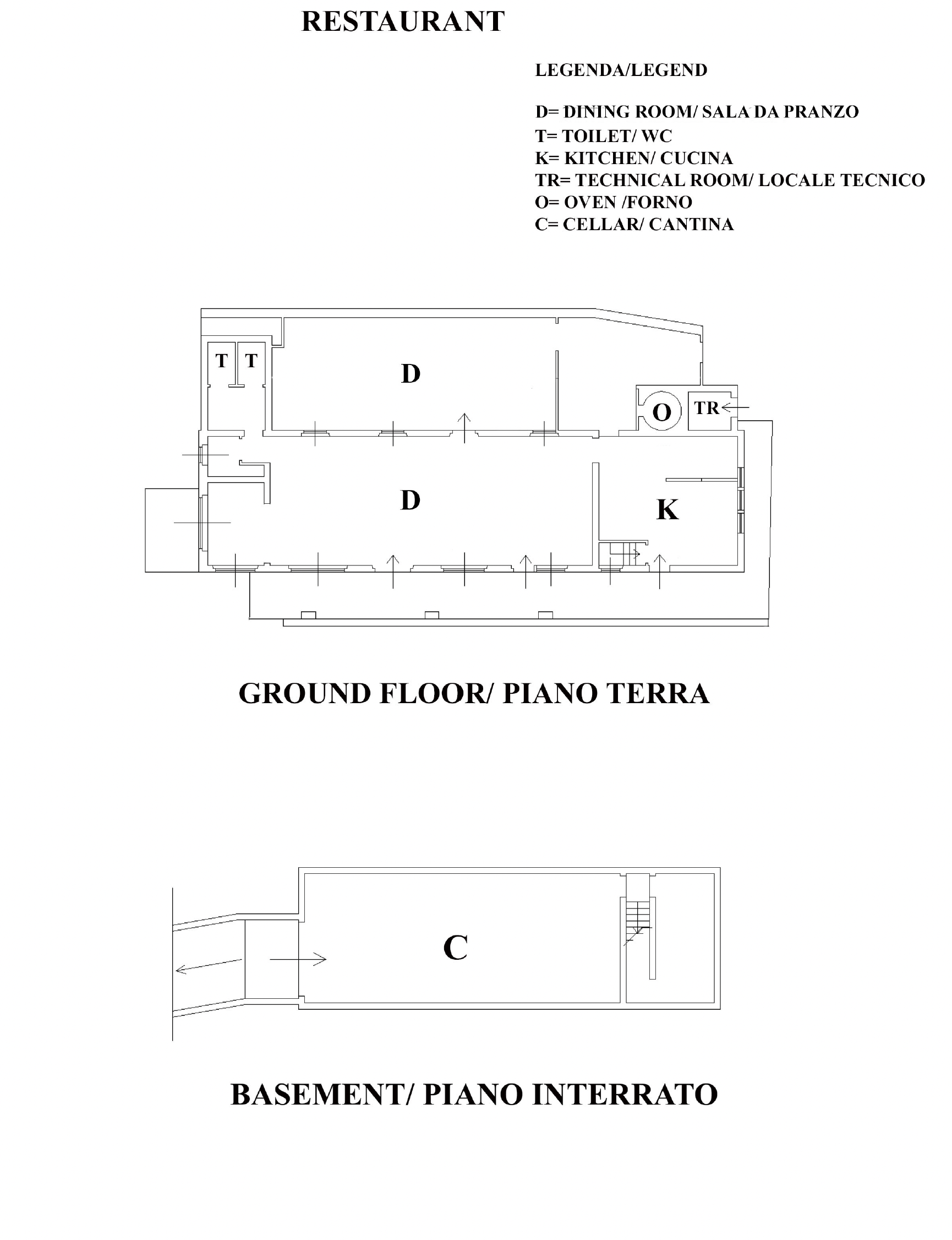 Al suo interno è formato da cucina professionale, ampia sala ristorante, sala pizzeria, due bagni e cantina al piano seminterrato.