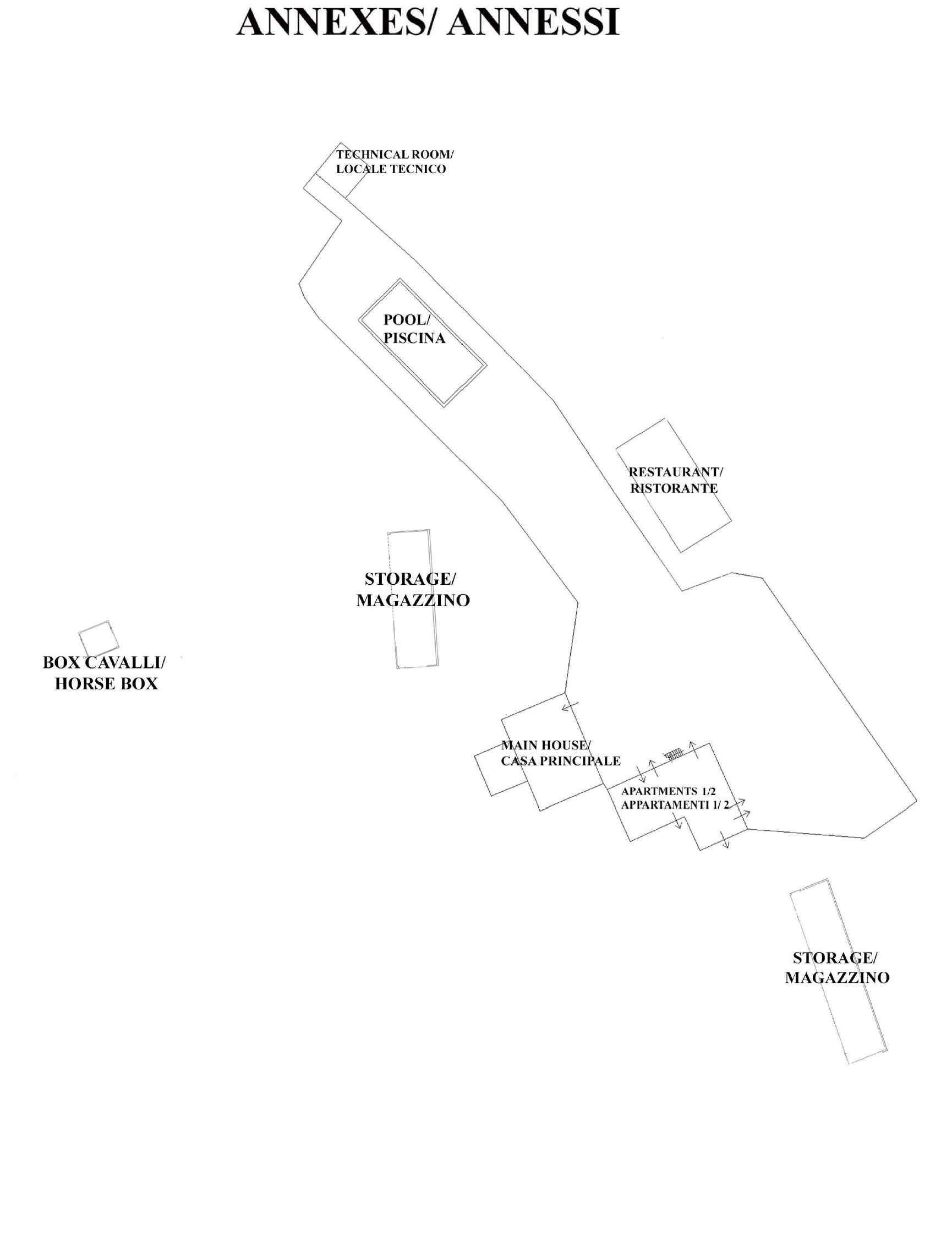 La vendita comprende anche vari annessi: locale tecnico, box cavalli e due fabbricati utilizzati come magazzino.
