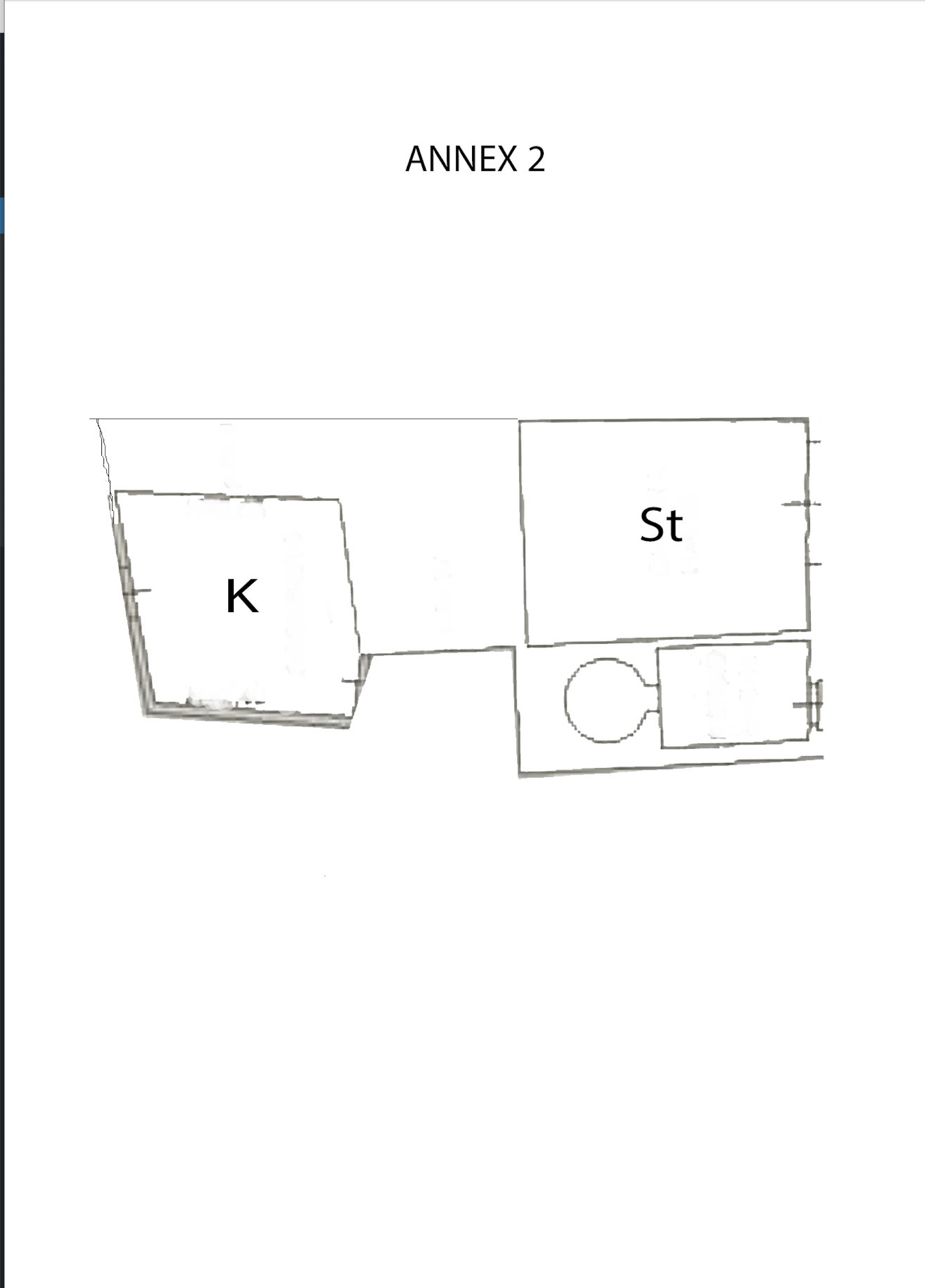 All’ esterno della villa troviamo 2 annessi. Il più vicino alla struttura principale (140 mq) è suddiviso in 2 piani: