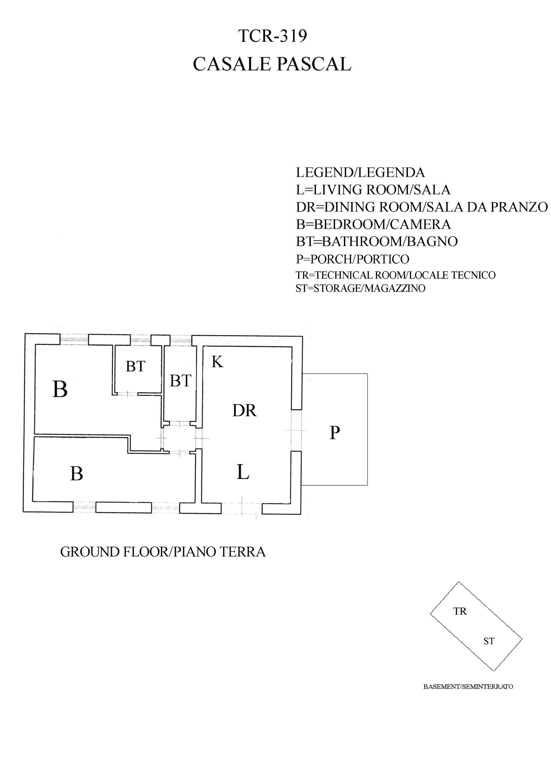 Il casale si sviluppa su un unico livello posto al piano terreno per una superficie complessiva di 82 mq.
