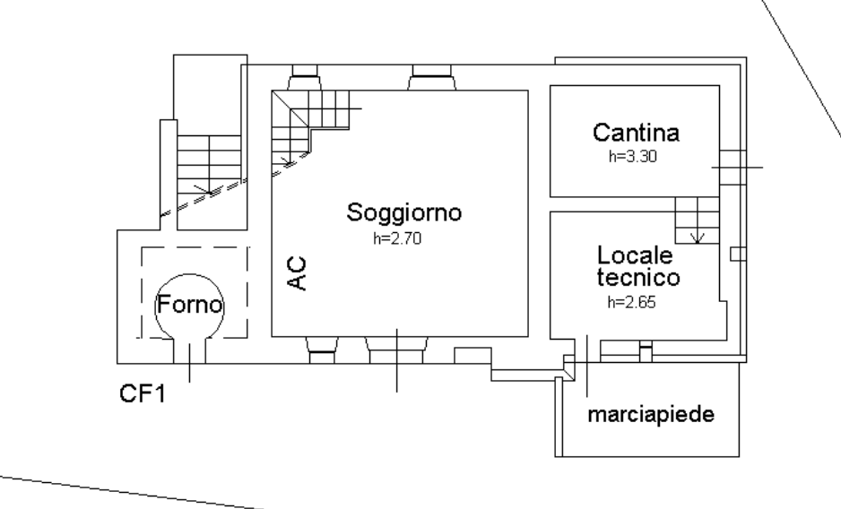 Al piano terra veniamo accolti nella zona giorno in un ampio salone con angolo cottura, qui troviamo anche la scala che ci conduce al piano primo. Sempre al piano terra, con ingresso indipendente troviamo una cantina e un locale tecnico.