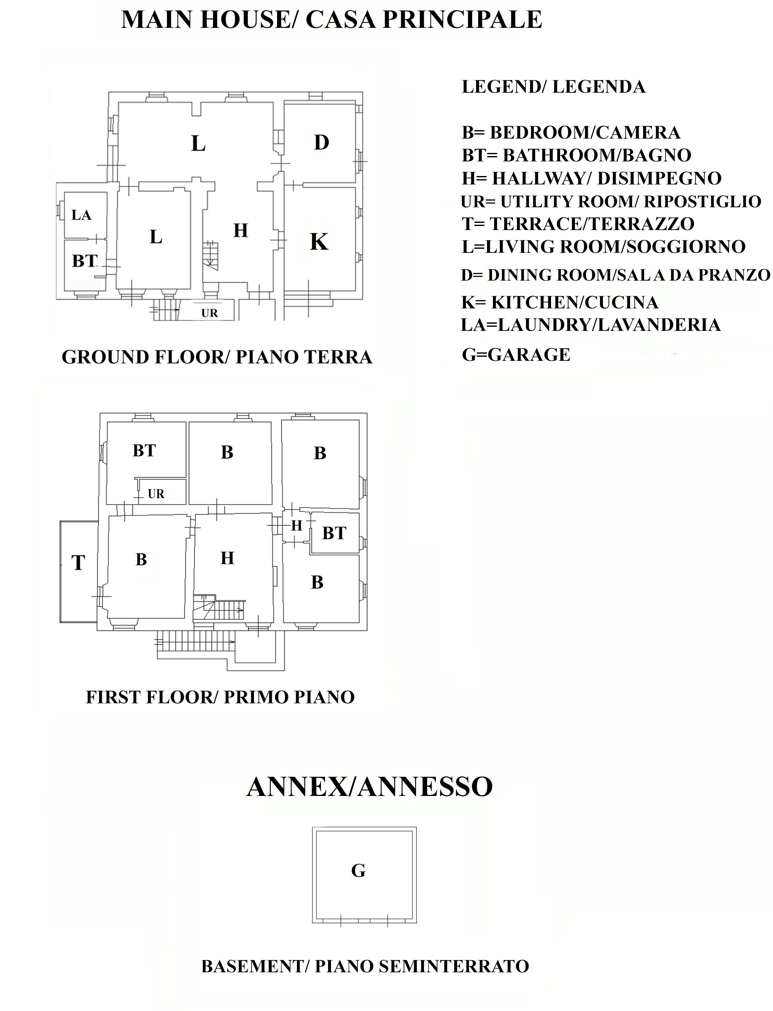 Il meraviglioso casale in pietra è disposto su due piani per circa 336 mq complessivi e al suo interno è composto come segue:
