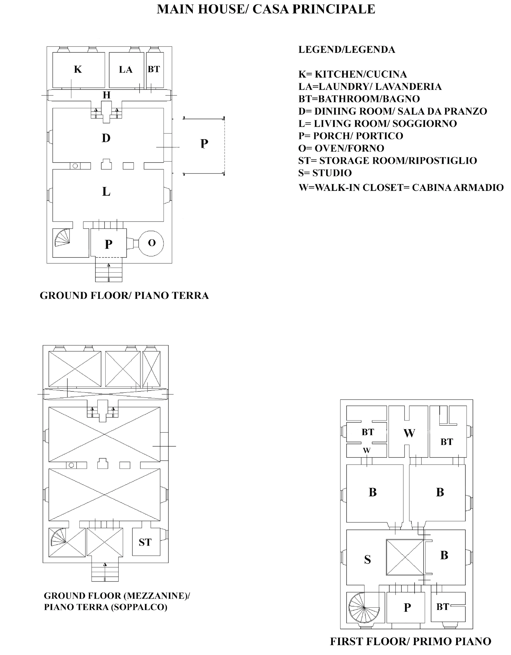 Il casale padronale, costruito in pietra, si sviluppa su due piani come segue: