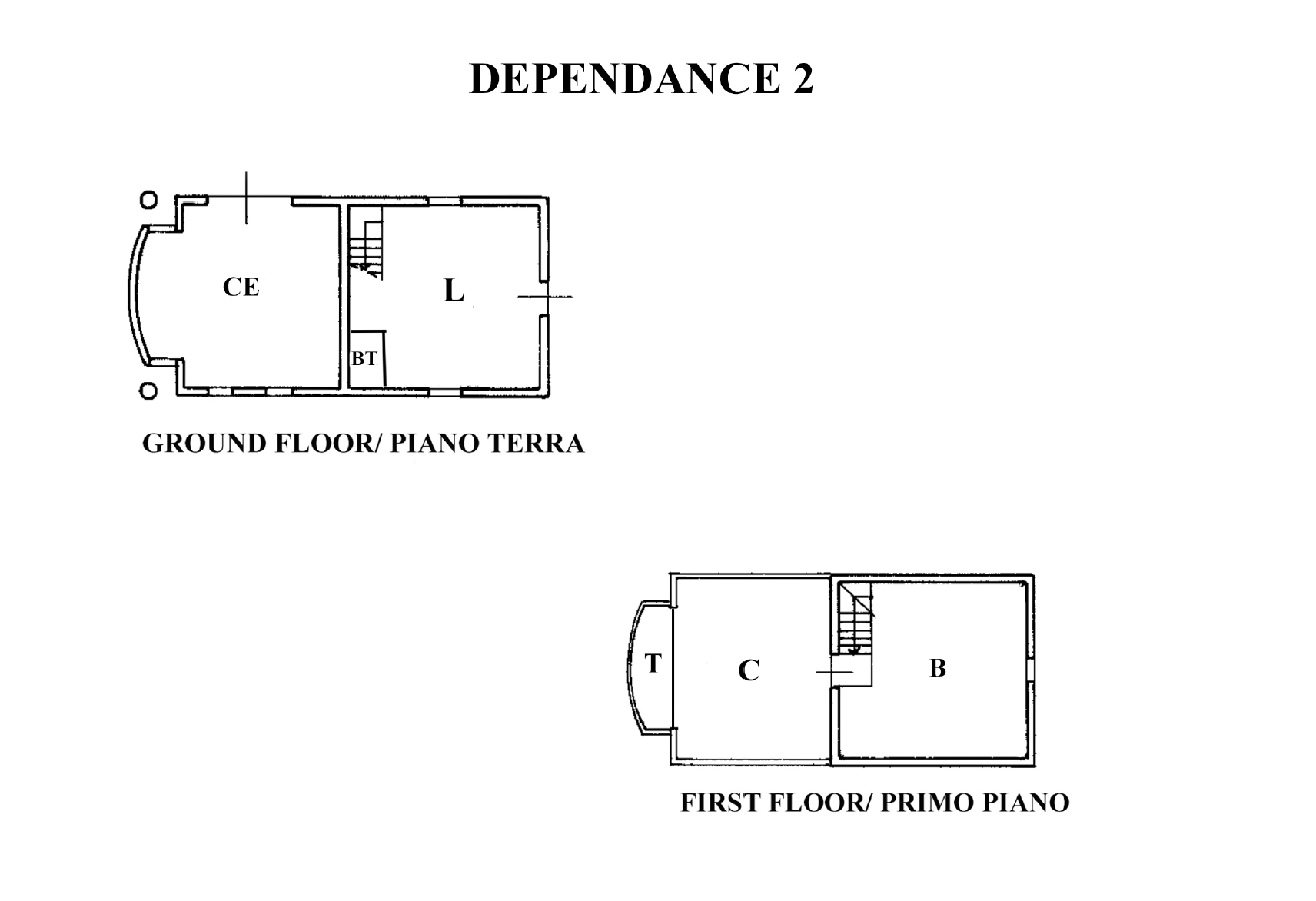 Accanto al casale troviamo la prima dépendance di 177 mq, con una zona giorno al piano terra composta da cucina e soggiorno, mentre al primo piano si trovano una camera matrimoniale, bagno e guardaroba.