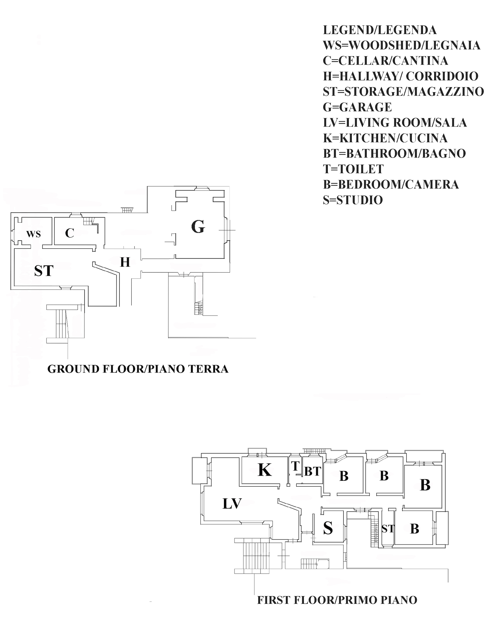 Al piano sottostrada troviamo il garage, la legnaia, i locali sgombero e una cantina con locale tecnico.