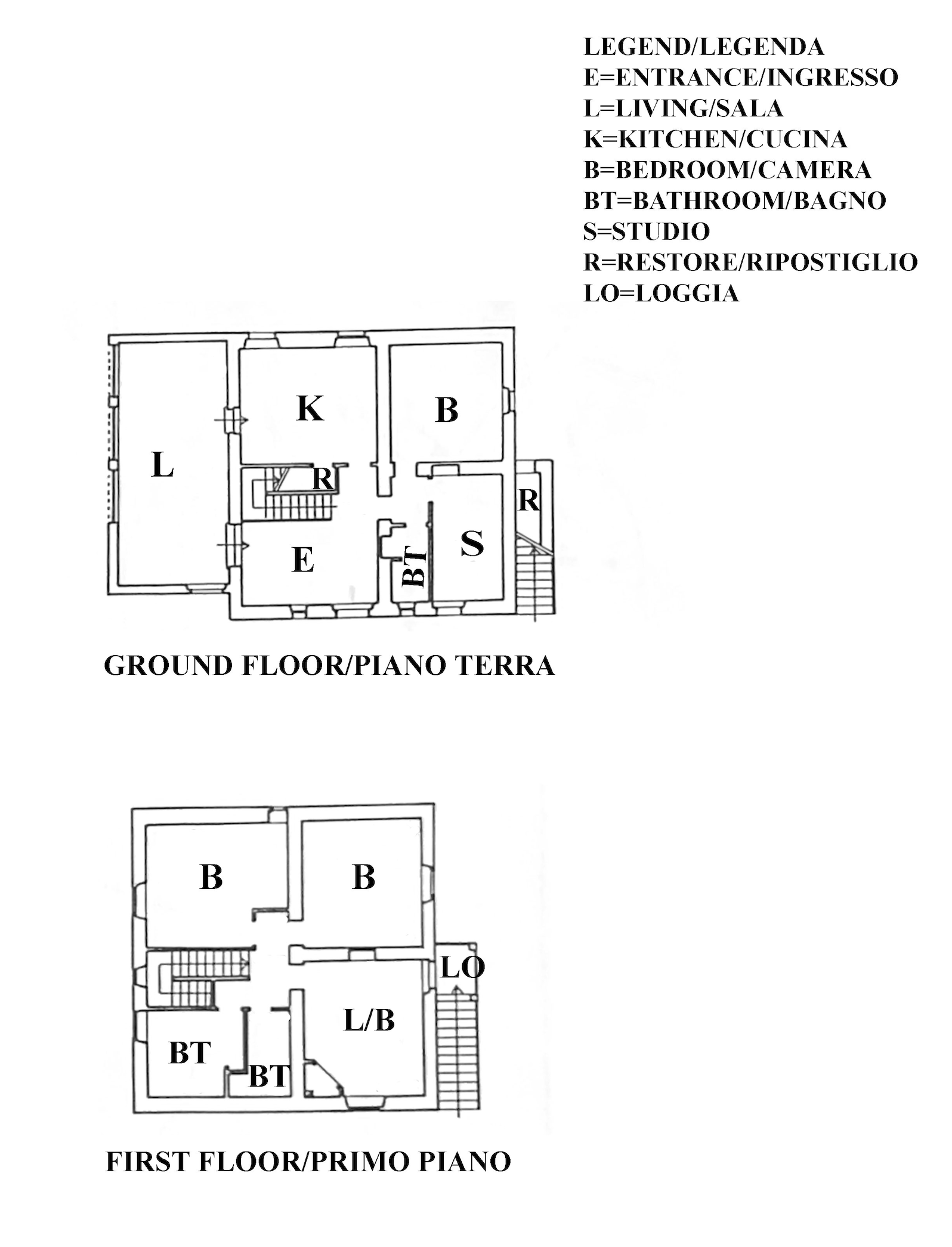 Questo splendido casale si sviluppa per circa 250 mq di superficie su due piani come segue: