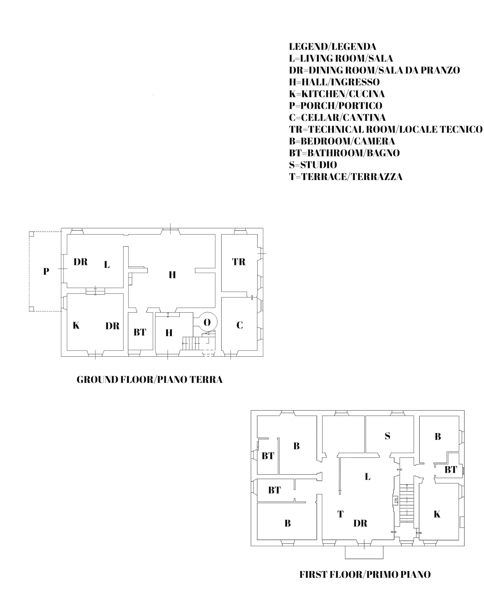 Al piano primo, troviamo un soggiorno con camino in pietra, una sala da pranzo, una cucina ampia e accogliente, tre camere, uno studio e tre bagni.