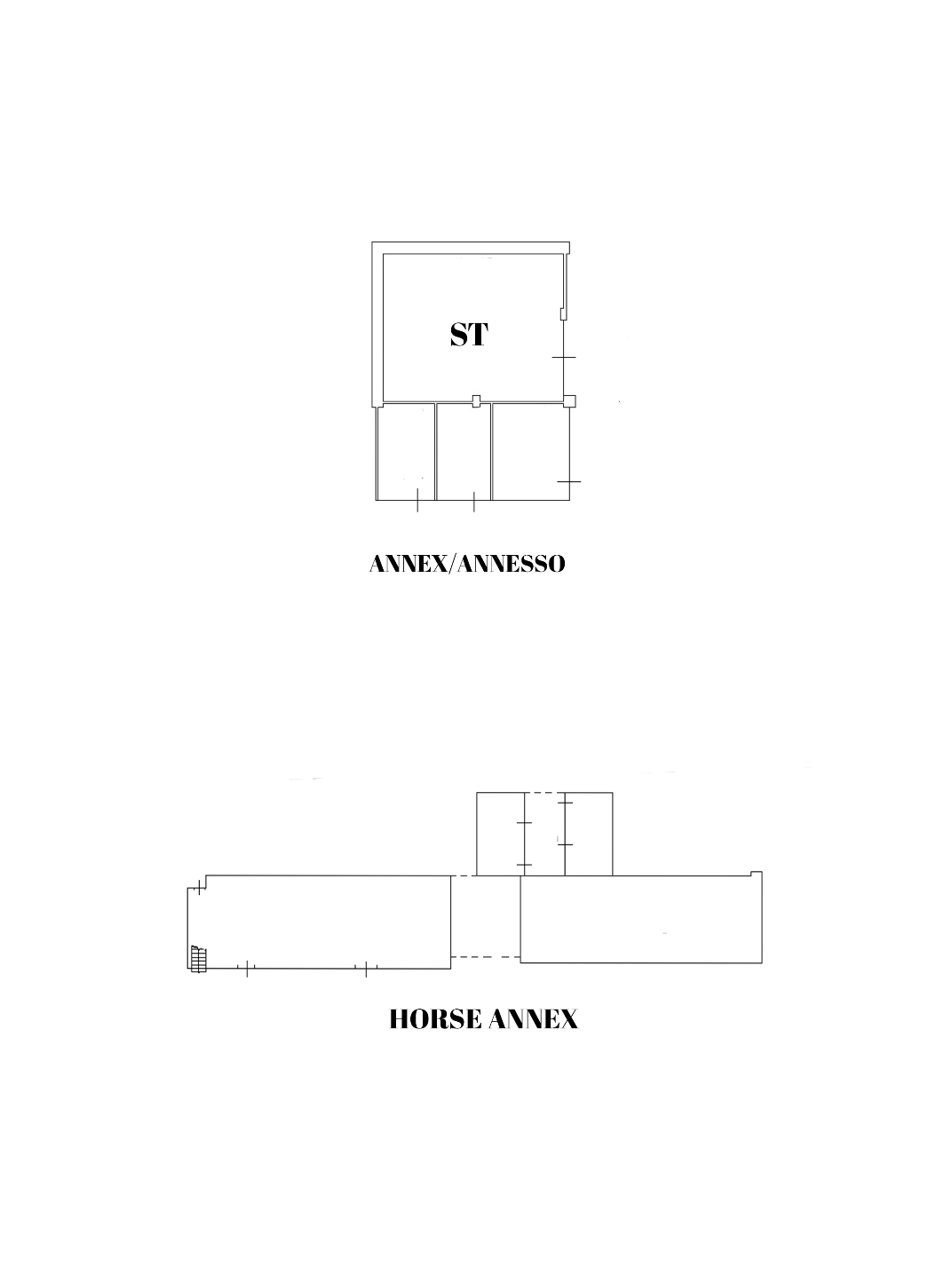 Accanto si trovano i box per cavalli, di circa 45 mq, con tettoia per il ricovero del fieno e degli attrezzi.